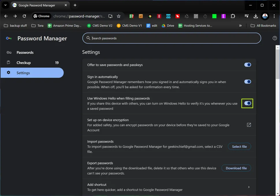 A recent version of Google Chrome (Oct 2025) for Windows seems to have added an extra — and annoying — new security feature that's enabled by default. Where the old Chrome would just remember and fill in your usernames and passwords, the new one asks you for your Windows PIN — or, if you have Windows Hello setup, a facial / fingerprint login — every single time you want it to enter a stored password.